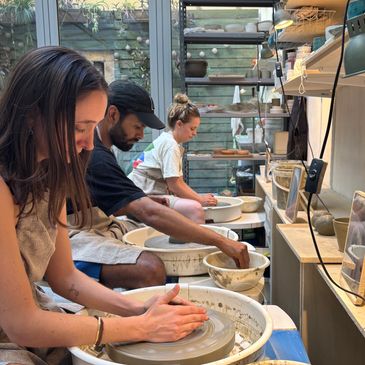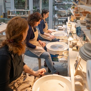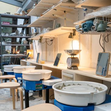 Lo studio in cui si terrà la lezione è il nostro spazio di lavoro. Questo significa che oltre ai corsi qui avvengono tutte le fasi del processo di produzione delle nostre ceramiche. Se sei in anticipo, non c’è problema: abbiamo una divano comodissimo dove puoi attendere l'inizio della lezione, ma probabilmente saremo impegnati ad ultimare